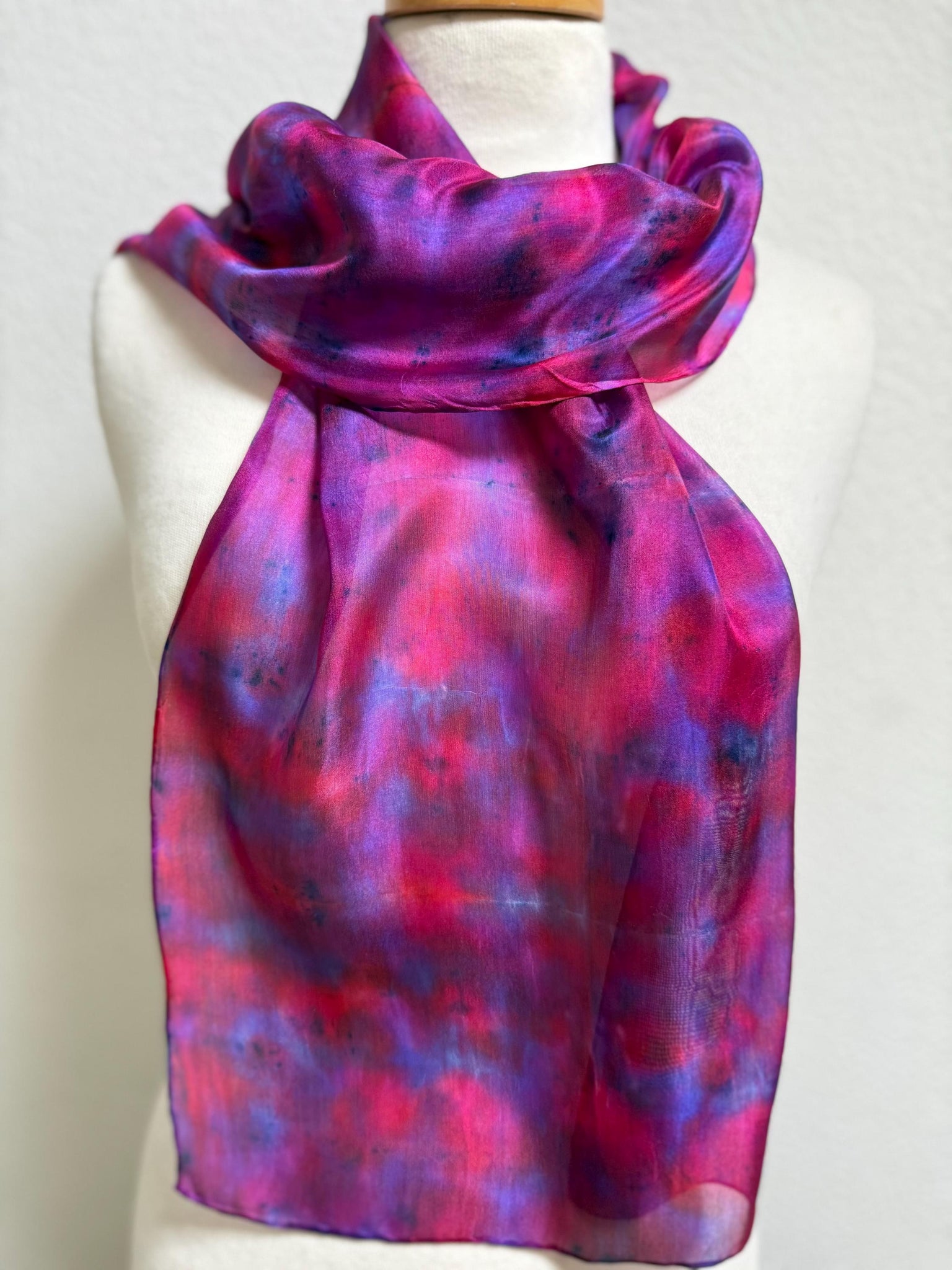 Hand Dyed Silk Neck Scarf in Purple Cerise Cobalt Navy by Designer Silk Artist